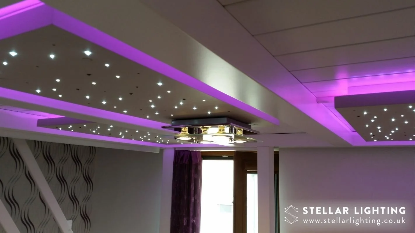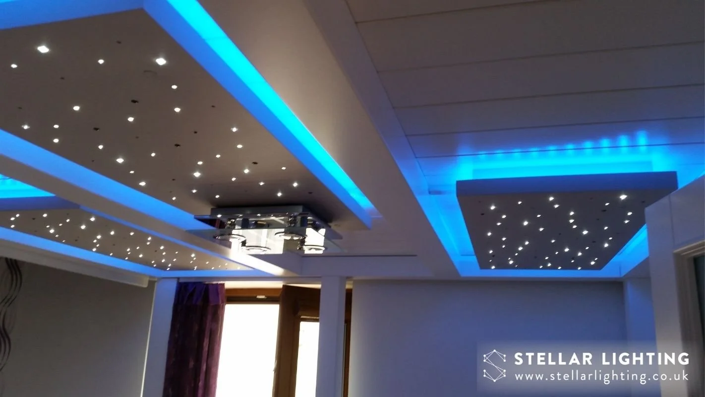 Our bespoke LED starlight ceilings are handcrafted and can be tailored to your preferences in a wide range of patterns, shapes, sizes and colours. Installation is a breeze, efficiency is key and longevity is guaranteed. Choose from a range of features and effects to bring your dream LED starlight ceiling to life. For a more detailed look at our LED starlight ceiling panels, click here.